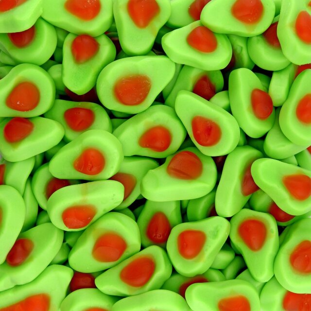 Ingrédients : Sirop de glucose, sucre, eau, gélatine, amidon modifié de pomme de terre, acidifiants : E330, E270, E296, Colorants :E102, E129, E133, huile végétale, arôme, agent de démoulage cire de carnauba.