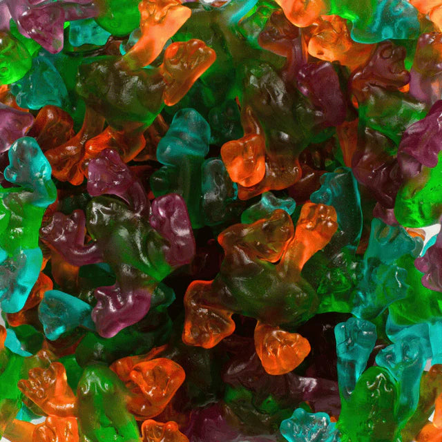 Ingrédients: Sirop de glucose, sucre, gélatine, eau, humectant : E420, acidifiants : E330, E270, régulateur d'acidité : E325, arômes, agents d'enrobage : E901, E903, colorants : E102, E110, E129, E133.