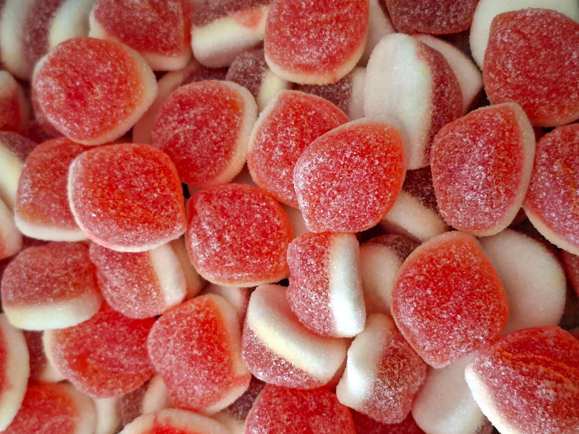 Ingrédients: Sirop de glucose, sucre, eau, gélatine, acidifiants : E330, E270, E296, pectine, Colorants :E102, E129, E516, arôme.