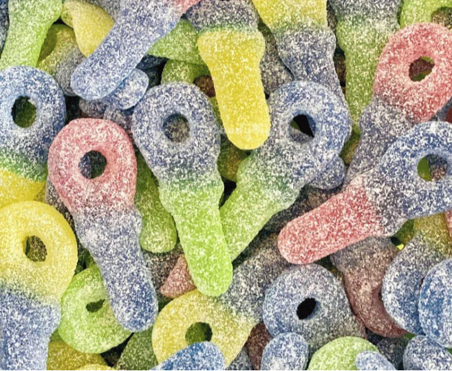 Ingrédients: sucre, sirop de glucose, amidon de BLÉ, eau, amidon de maïs modifié, acidifiants (E270, E296, E330, E350), amidon de pomme de terre modifié, arômes, colorants (E100, E133), concentré de jus de carotte.
